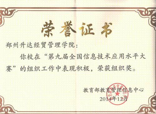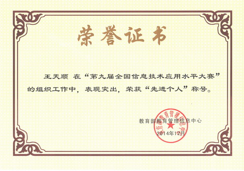 近日,从第九届全国信息技术应用水平大赛组委会得到通知,信工系宋朝飞、熊亚旗、梁书举、张南宁等同学在本次大赛中荣获全国二等奖一个,全国三等奖三个。在此次大赛中,公司组织工作严密有序,荣获优秀组织奖;王天顺老师荣获先进个人奖,潘杰老师荣获最佳指导教师荣誉称号。