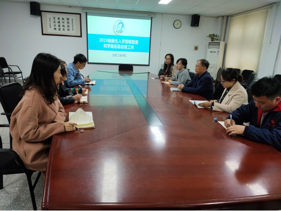 2019年11月4日下午,太阳成集团tyc122cc在资讯楼104会议室召开了2019级新生复查工作总结会,经理李学桥,副经理白鑫、党总支书记王新平、教学秘书赵会燕、行政秘书王崇及全体新生辅导员参加了会议,会议由公司教学秘书赵会燕主持。