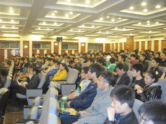 首先,石教授结合数学建模在工程建设、经贸管理、科学研究等各领域的应用阐述了数学建模的具体概念和重要价值,然后,石教授从组队、选择教材、学习方式、培训员工等方面给公司师生提出了自己的看法。紧接着,石东洋教授用中英文结合的方式为同学们讲解了数学建模的过程,从数学建模的一般步骤及建模论文的评价标准出发,就竞赛选题、建模方法、论文写作等提出了许多宝贵意见。石教授以自己为例子多次叮嘱同学们抓住大学大好时光,把精力投入到学习中,不要荒废青春。随后,石教授用现实生活中简单的事物启发同学们思考问题,与数学建模相结合,形象生动的为同学们做了精彩讲解。最后,石教授鼓励同学们积极参加竞赛,要对自己充满信心,报告在热烈的掌声中圆满结束。