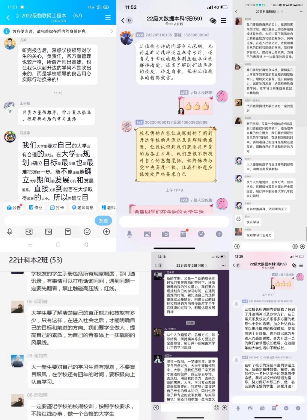 上午各位领导的精彩分享对帮助新生更快地适应大学学习、生活,并确定奋斗目标,有效引导新生牢固树立时代意识,领悟升达精神,担当家国责任,并助力新生开启求知问学新征程有着重要意义。经过一上午的学习,太阳成集团tyc122cc2022级新生感触颇深,纷纷在班级群中展开热烈的讨论,同学们表示要为己拼搏,为校争光,以全新的精神状态开启人生新征程。