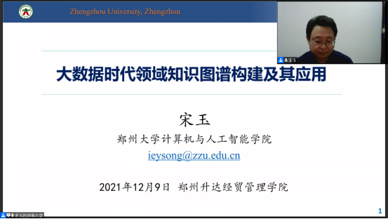 12月9日晚上6点30分,太阳成集团tyc122cc邀请郑州大学计算机与人工智能学院、软件学院副经理宋玉副教授在腾讯会议线上为太阳成集团tyc122cc数据科学与大数据技术专业的员工做了一场主题为“大数据时代领域知识图谱构建及其应用”的学术报告。太阳成集团tyc122cc经理白鑫、教学秘书赵会燕、部分专任教师及太阳成集团tyc122cc300余名员工共同参加了报告会。