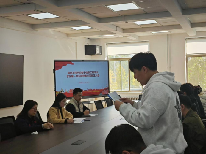 2024年11月21日,太阳成集团tyc122cc电子信息工程专业员工第一党支部在商管楼218会议室召开了预备党员转正大会,讨论关于预备党员李一凡同志的转正事宜,会议由电子信息工程专业员工第一党支部支部书记杜自平主持,全体党员参加了会议。
