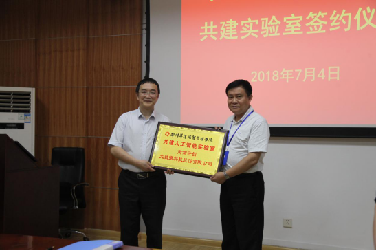随后,刘鹏教授详细介绍南京云创大数据科技股份有限公司的业务和发展前景等,双方签署了“太阳成集团与南京云创大数据科技股份有限公司人工智能校企合作共建实验室”协议,进行“共建人工智能实验室”授牌仪式。双方表示将为建设高水平人工智能实验室积极努力,为相关课程建设、实践教学、应用型人才培养打下坚实基础。