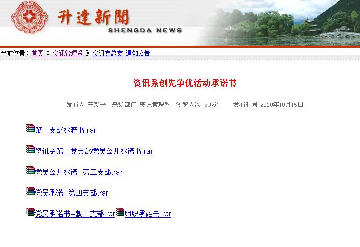 资讯系党总支按照上级党组织的有关要求,立足实际,以为师生做好事、办实事、解难题、做表率为目的,按照创先争优公开承诺的相关规程,科学确定公开承诺内容,严格规范承诺步骤,确保“创先争优”活动取得实效。