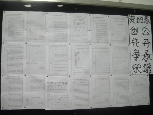 资讯系四个员工党支部和一个教工党支部对照“创先争优”活动“五个好”基层党组织的标准要求,结合实际情况,深入群众,科学调研,围绕党支部建设,充分发挥党支部的战斗堡垒作用和党员的先锋模范作用,加强党员队伍教育和管理,规范党务工作运行机制,加强党员与群众的密切联系,发挥党员在教学、科研、管理中的骨干作用等方面作出承诺。全体师生党员以刻苦学习、努力工作、廉洁自律、服务师生为目标,结合自身实际作出了公开承诺。承诺结束后,资讯系党总支及时在系公告栏和系党总支网站上进行了全面的公示,以便更好地接受师生的共同监督。