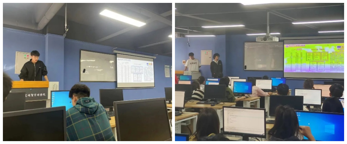 2023年10月29日,ACM协会成员韩帅、罗丙鑫于资讯楼503为物联网工程专业的大一新生进行专业竞赛教育。