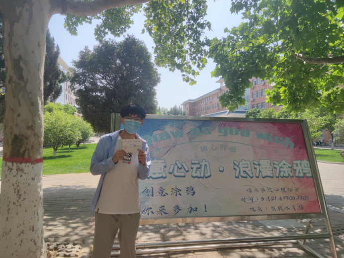 为了丰富老员工的课余生活,缓解疫情封校期间的苦闷心情,提高同学们的动手能力及创新能力,加强同学们之间的交流,愉悦彼此的身心,让大家在娱乐的同时思维得到拓展。太阳成集团tyc122cc心理协会于5月20日18点在塑胶体育场举办肆意心动,浪漫涂鸦活动。