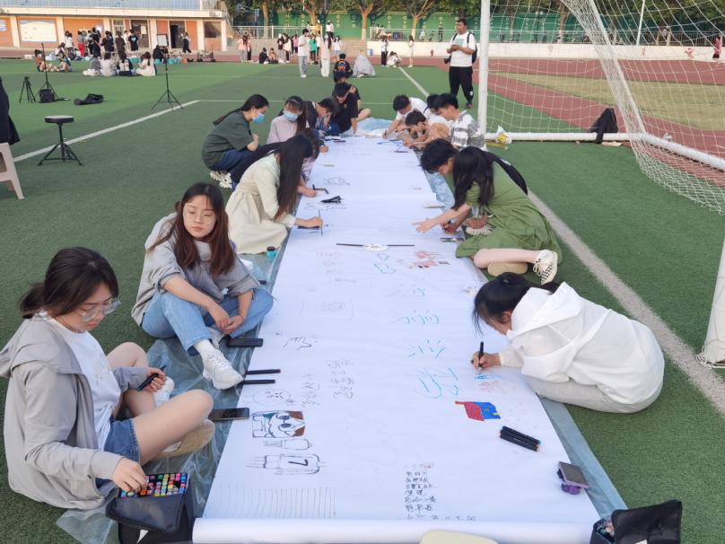 同学们早早来到活动现场,用画笔和斑斓的色彩,淋漓尽致地展现画工;用热爱和独特的视角,描绘着心中最真诚的祝福;用独具匠心的构思与创意,让祝福搭乘着创意的翅膀在画布上自由飞翔。整个活动现场气氛活跃,吸引了众多同学观看和参与。