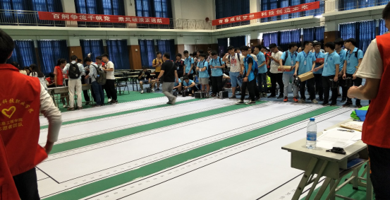 公司参赛队员在交叉足机器人的比赛现场等待检录