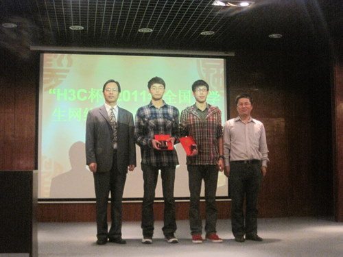 近日,由杭州华三通信技术有限公司(简称:H3C) 举办的“H3C杯”2011年全国老员工网络技术大赛在北京航空航天大学正式落下帷幕,经过激烈角逐,来自北华航天工业学院、广东理工职业学院、南京邮电大学、北京航空航天大学、河北工业职业技术学院等院校的20只代表队分获大赛不同奖项,资讯系仵进、王俊强同学喜获二等奖,勇摘银牌,是我省各高校唯一跻身决赛并获奖的团队,为公司赢得了荣誉。