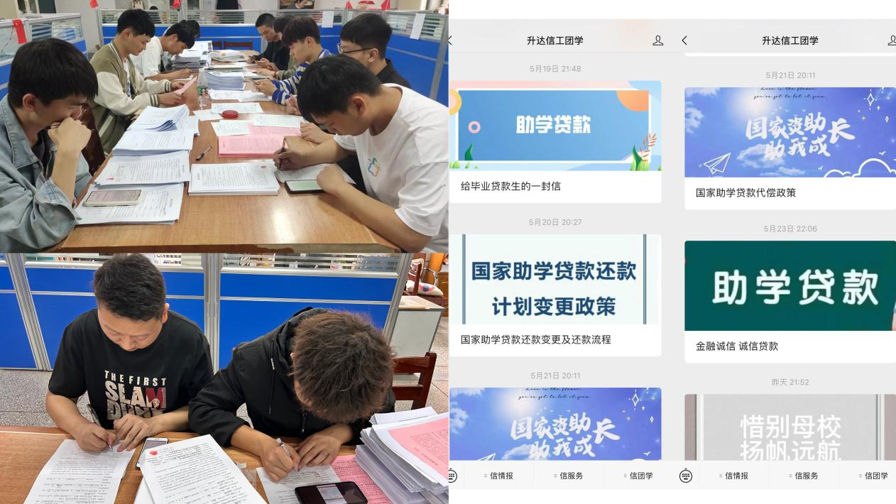 宣传国家助学贷款政策,引导贷款毕业生“诚信还款”。为使广大同学深入了解国家助学贷款有关政策,帮助困难员工顺利完成学业,学院通过公众号分享资助政策、还款流程等文章,毕业班辅导员结合毕业生还款确认等工作,召开“贷款毕业生诚信还款”主题班会,通过微信分享、QQ群等多种方式,对国家助学贷款的种类和具体办理流程进行说明。同时,发放《给毕业生贷款员工的一封信》,组织贷款毕业生签署《诚信还款承诺书》,确保所有贷款毕业生全面了解国家资助政策,加强贷后管理和教育,增强员工履约意识,引导员工树立按时还贷、诚信还贷及珍惜个人征信的正确意识。提高国家助学贷款回收率,充分发挥管理育人作用。最后,学院召开2023届毕业生资助政策宣传、诚信教育暨诚信还贷典型表彰会议。
