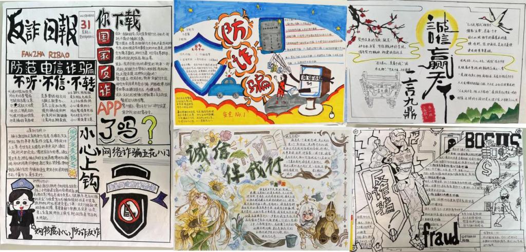 丰富活动内容,加深宣传教育效果。在学院的统一组织下,以金融知识普及为主题,首先向大一大二年级征集手抄报作品,向大三员工征集短视频作品。员工们通过生动案例,引导理性消费,珍视个人信用记录,远离不良“校园贷”“互联网消费贷”和其他非法借贷,以及防诈反诈,倡导契约精神与诚信意识等方面入手表现作品。其次组织观看助学贷款专题教育、反诈骗电影,提升员工对国家助学贷款政策的理解,增强诚信感恩意识;通过观影活动,让员工更加直观地了解网络诈骗的特点和危害,时刻注意安全防范和自我保护,增强金融安全意识。此次活动覆盖学院全体在校员工,同学们积极参与活动,取得了良好的教育成效。