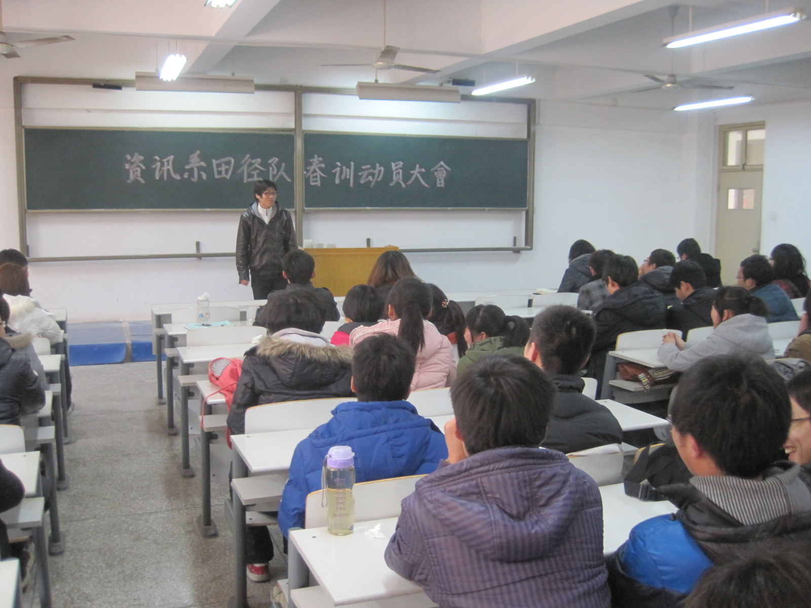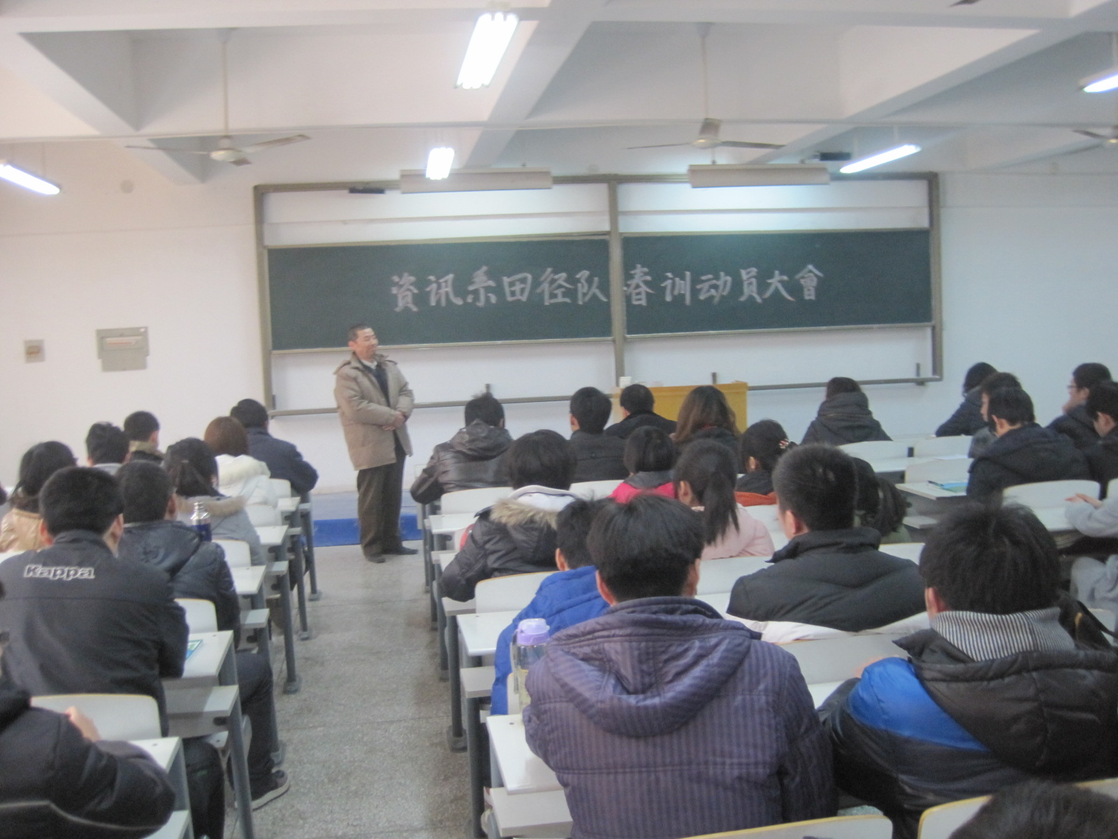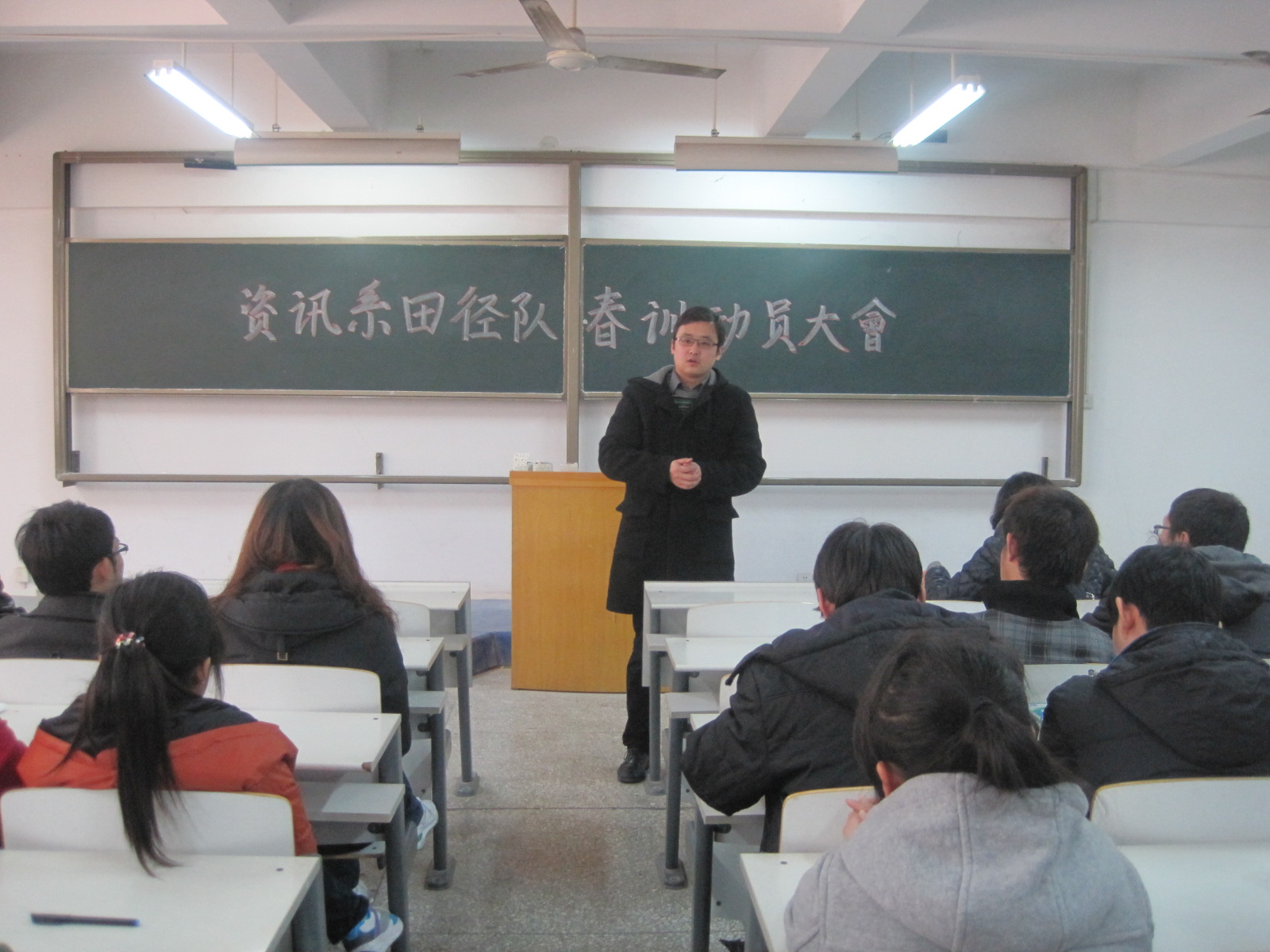 2月20日中午1点,资讯系田径队春训动员大会在资讯楼112室隆重举行。资讯系主任冷建华教授、党总支魏民书记、王新平副书记、团委书记张娟老师、团委常务副书记李磊老师、2011级团总支书记袁保华老师、资讯系所有田径队员及团委员工会全体成员共同参加了本次大会。大会由团委员工会副主席张子丰主持。