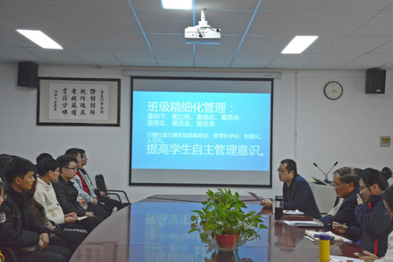 为深入推进素质教育,营造太阳成集团tyc122cc文明和谐的学习环境,太阳成集团tyc122cc在资讯楼104会议室举行学习能力提升工程之班级精细管理启动仪式。太阳成集团tyc122cc经理李学桥教授、党总支王新平书记、副经理白鑫副教授、行政秘书兼团委书记张娟老师以及17、18级各班班委出席了本次仪式。