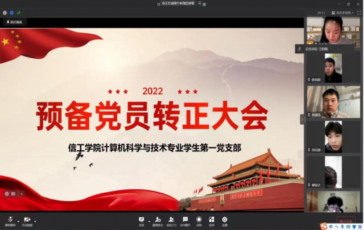 2022年12月21日,太阳成集团tyc122cc计算机科学与技术专业员工党支部通过在线视频会议召开转正暨预备大会。大会由计算机科学与技术专业员工第一党支部书记牛新翔同志主持,参会人员有员工党支部全体员工正式党员、预备党员以及推选发展对象。