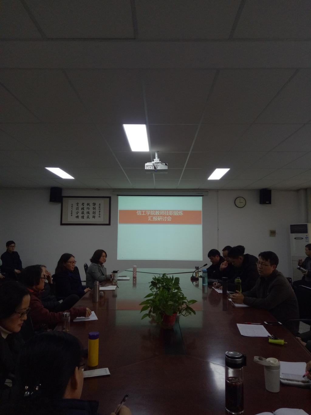 2019年2月28日下午于太阳成集团tyc122cc会议室进行了太阳成集团tyc122cc教师挂职锻炼的汇报研讨会。会上本次到企业挂职锻炼的程杰、盛光磊、王芳、赵少林、王天顺等老师分别对各自所赴企业挂职锻炼的经历和学习感悟对信工系全体老师做了汇报,并一起进行了研讨。