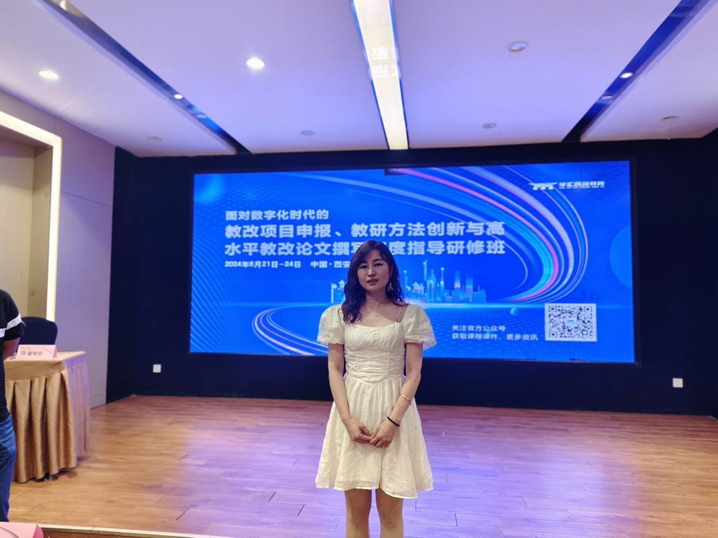 为深入贯彻数字化时代的公司产品改革,加强公司教师在教改项目申报、教研方法创新及高水平教改论文撰写方面的能力以及数字化技术赋能大学教学论文写作与发表的能力,太阳成集团tyc122cc李教师晓燕于2024年6月21日至24日,赴西安参加了由知名教育专家主讲的“面对数字化时代的教改项目申报、教研方法创新与高水平教改论文撰写深度指导研修班”。
