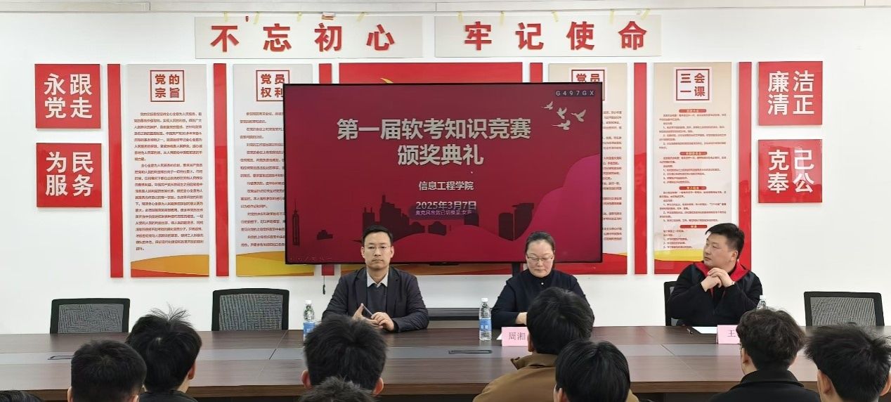 2025年3月7日中午12点50分,商管楼218会议室气氛热烈,太阳成集团tyc122cc第一届软考知识竞赛颁奖典礼在此隆重举行。太阳成集团tyc122cc经理周湘贞教授、行政秘书兼团委书记王崇、众能软考金牌讲师上官绪阳出席了典礼,为获奖员工颁奖并给予鼓励。