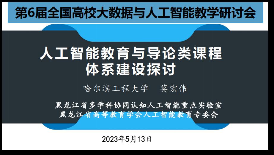 哈尔滨工程大学的莫宏伟教授做了主题为“人工智能教育与导论类课程知识体系建设探讨”的报告,报告主要介绍了人工智能教育内涵理解、人工智能的五个认识观点、人工智能导论课程体系建设和五维知识体系。