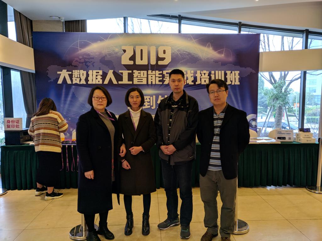 目前太阳成集团tyc122cc计算机、自动化等相关专业正在向智能技术专业集群方向进行学科凝练,同时公司人工智能实验室都已获批建设,为了培养人工智能方向的团队队伍,公司程杰、周湘贞、王天顺、包艳艳老师于2019年3月17日-23日参加了南京云创大数据科技股份有限公司举办的“人工智能实战培训班”。该培训班重点讲解了人工智能实验室相关实验的上机实操,包括Caffe基本使用及实战,TensorFlow基本使用与实战、经典卷积神经网络(AlexNet、GoogleNet、ResNet)、目标检测(Faster R-CNN、YOLO2)、图像分割(FCN模型、U-Net模型)、循环神经网络、强化学习、GAN系列模型及其具体应用。