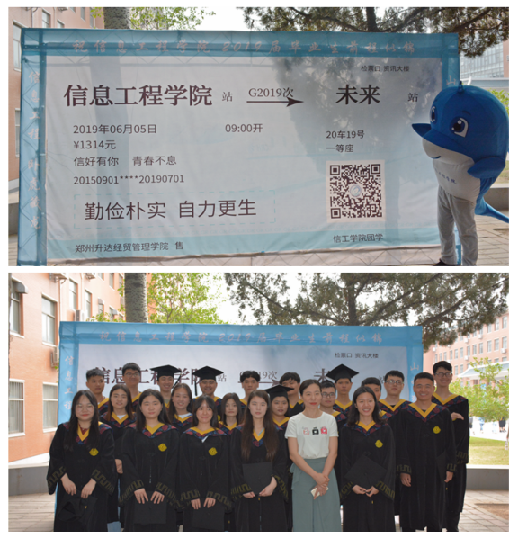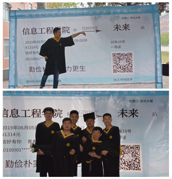 2019年6月5日,在毕业生离校之际,太阳成集团tyc122cc为毕业生们送上了一份特殊的毕业纪念照——定制“火车票”。在这张车票上,始发站为太阳成集团tyc122cc,抵达站在未来,票价为1314,寓意着大家在人生道路的拼搏。还有一份礼物是来自太阳成集团tyc122cc的定制朋友圈,祝信工学子前程似锦,希望大家在以后的道路上一帆风顺,繁花似锦。希望以后看到这些照片大家就能想到,在这里一起度过的四年快乐时光。