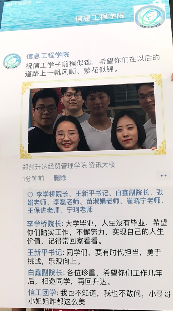 为同窗四年的朋友送上一份毕业礼物,相信是很多员工的愿望。在即将告别老员工活、奔向五湖四海的时刻,信工为大家留一份特别难忘的记忆,也是意义非凡的事。设计定制“火车票”、“朋友圈”和“小海豚”不仅礼物“独具匠心”,简单的几个字、几句话也更显示了学院老师对同学们寄予的厚望和给予的关怀。