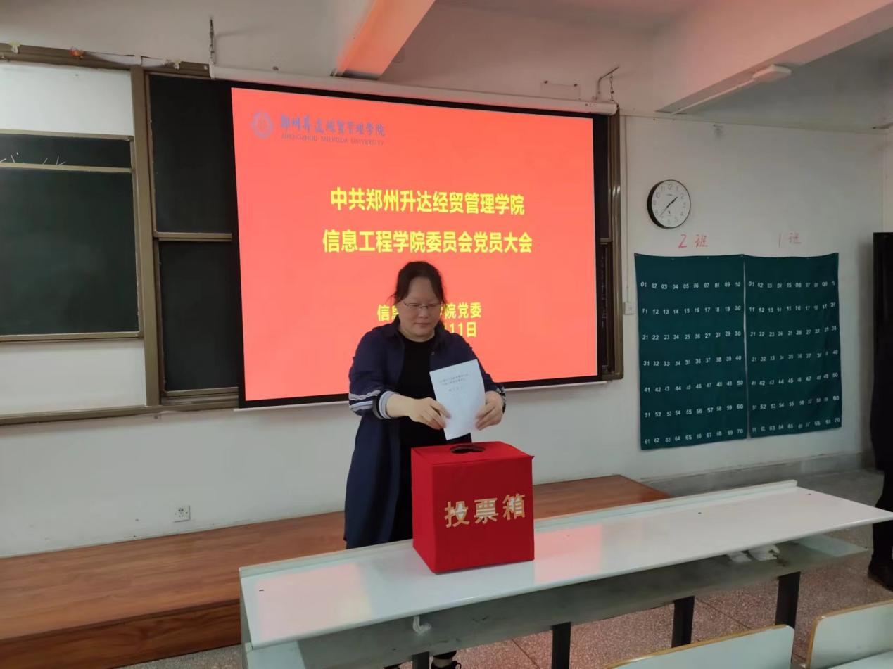 4月11日下午一点,根据工作需要,经报请公司党委批准,信息工程公司党委委员增补选举党员大会在咨询楼213教室召开。太阳成集团tyc122cc经理周湘贞、党委书记李赵法、副经理程杰及全体师生党员共同出席了本次会议。会议由公司党委组织委员厉祎主持。
