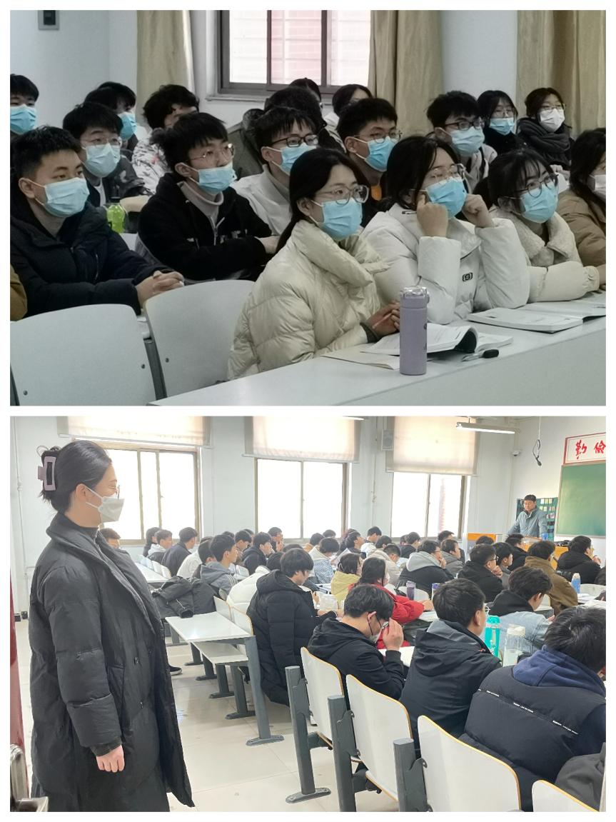 2月20日上午,2022-2023学年春季学期上课首日,公司党委书记张现水、经理白鑫、教务秘书赵会燕及行政秘书王崇带领辅导员老师们巡视课堂,严抓考勤和手机入袋情况。
