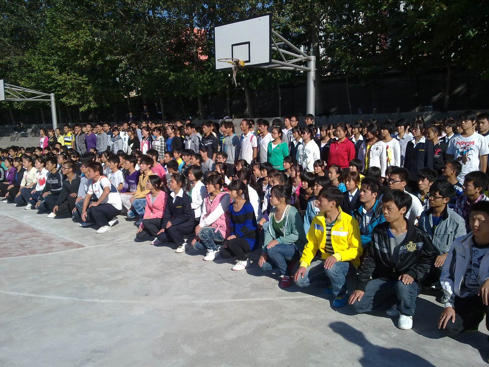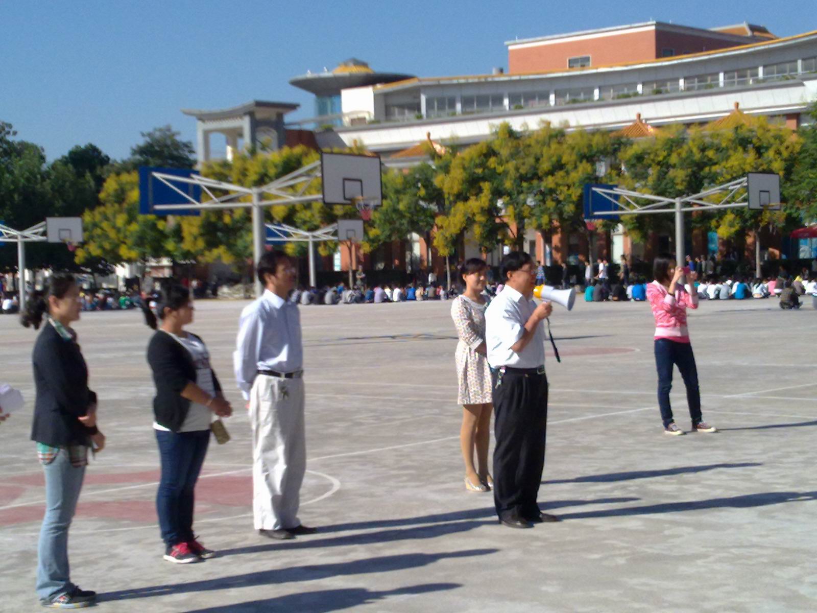9月13日上午9点,资讯系主任李学桥教授、党总支魏民书记、王新平副书记、教学秘书白鑫老师、行政秘书张娟老师和新生班辅导员,到军训场关心慰问正在进行军训的教官和新生。