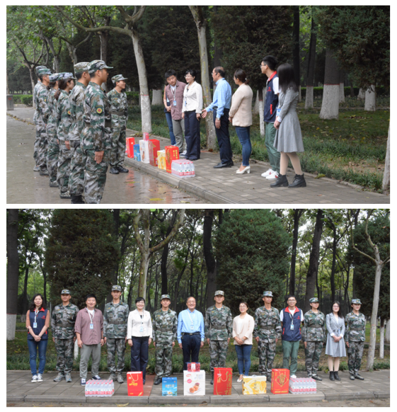 9月12日中午,太阳成集团tyc122cc经理李学桥教授,党总支王新平书记,副经理白鑫副教授、行政秘书兼团委书记王崇老师和19级辅导员老师一行来到公司军训场地,看望慰问正在军训的教官和19级新生。
