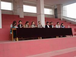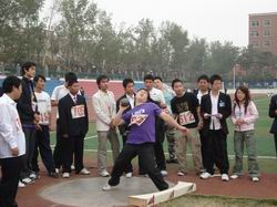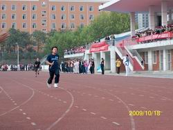 上午9点钟运动会正式开始。运动员们一个个精神饱满,尽情挥洒热情,奋力拼搏。接力赛程中,接力棒在大家手中传递着集体的力量;千米长跑中,运动员挑战着自己身体的极限;跳高跳远比赛中,他们的一次次跨越,也是一次次的超越自我……,虽然今年我系新生总数不多,但是赛场上啦啦队的加油声、运动员的呐喊声,声声震天。尤其是最后由三位09级辅导员老师亲自带队进行的30*100米接力跑更是将整个运动会的气氛推向了高潮。