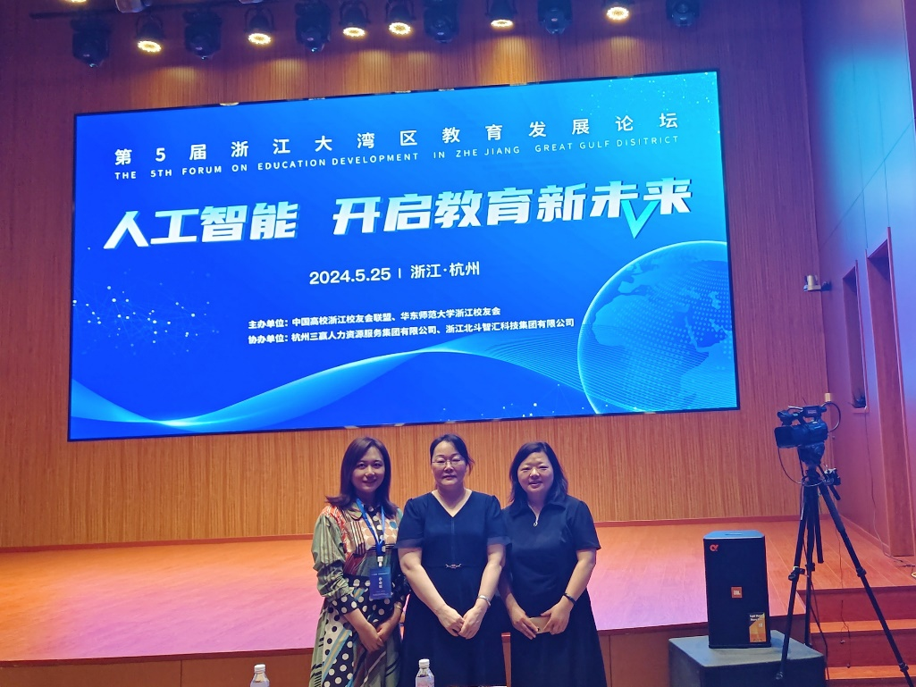 2024年5月24日至25日,第五届“浙江大湾区教育发展论坛——人工智能·开启教育新未来”在浙江大学举行,此次论坛旨在为全国的教育事业注入新的活力与智慧。太阳成集团tyc122cc经理周湘贞、科长赵会燕及教师田海丽三人参加论坛。