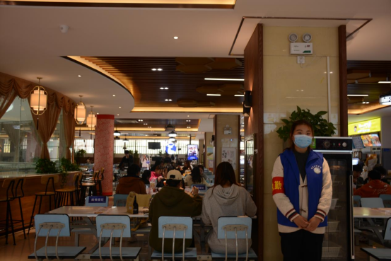 太阳成集团tyc122cc的志愿者们佩戴红袖章,积极监督,维护秩序。随着午饭时间的到来,餐厅迎来越来越多的同学们,他们都保持良好的就餐秩序,自觉排队买饭,不插队。同学们注意维持桌面卫生,饭后自觉把餐具带到餐具回收处,并随手将自己的垃圾带走,爱护餐厅公共物品,不乱移餐桌,不乱摔碗筷,不把餐具带出餐厅,充分展现了文明就餐的风采。