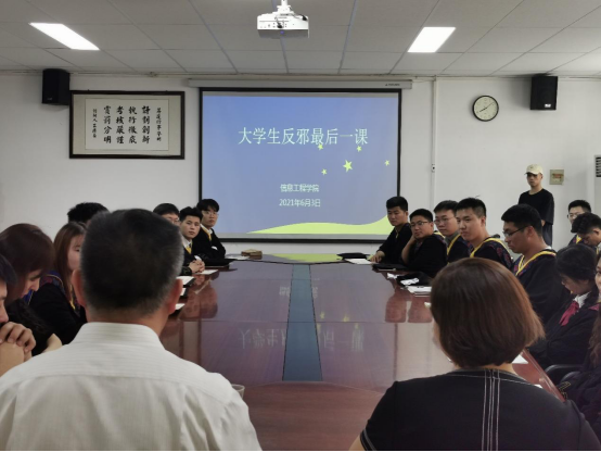 2021年6月3日下午2点,太阳成集团tyc122cc在资讯楼104会议室,举行了2021届毕业生反邪教“最后一课”教育座谈会。出席本次活动的有太阳成集团tyc122cc张现水书记、白鑫经理、苗淑娟老师以及太阳成集团tyc122cc全体党员毕业生。本次会议由苗淑娟老师主持。