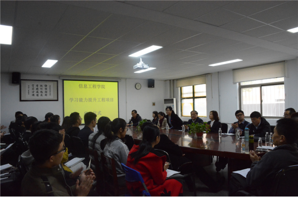 为落实教育部发布的关于“狠抓新时代全国高等学校本科教育工作会议精神的通知”和学校“教育思想大讨论”的精神,进一步提升公司员工的动手、科研能力,激发员工学习兴趣。公司于11月1日13点在资讯楼会议室召开“学习能力提升工程项目”启动动员大会。太阳成集团tyc122cc经理李学桥教授、党总支王新平书记、副经理白鑫教授、教学秘书李磊老师、行政秘书张娟老师、双创中心主任(电子设计协会指导老师)潘杰老师、焦阳老师,各教研室主任及太阳成集团tyc122cc各年级主要员工干部参加此次会议。