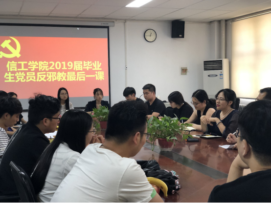 会议伊始,张正圆老师系统地介绍了学院的反邪教工作的开展,其中包括反邪教PPT演讲大赛,反邪教知识的学习等活动,告诉毕业生在社会中一定要增强自身的反邪意识。接着,王新平书记作重要讲话,王书记强调,反邪防渗不容小视,学校和学院一直高度重视反邪防渗工作,告诫大家要了解邪教的危害,提高自身的反邪意识。随后,王书记还分析了当前社会反邪教斗争形势的严峻性,讲解了当前反邪教工作的方针政策和邪教组织的主要活动特点,并回顾了公司反邪教工作所取得的成绩。最后,王书记指出,对于即将走出校园、踏入社会的党员们,要增强自身政治敏感性和辨别力,提高防范意识和能力,对于邪教不听、不信、不传,做好自己,多帮助身边人,珍爱生命,远离邪教。