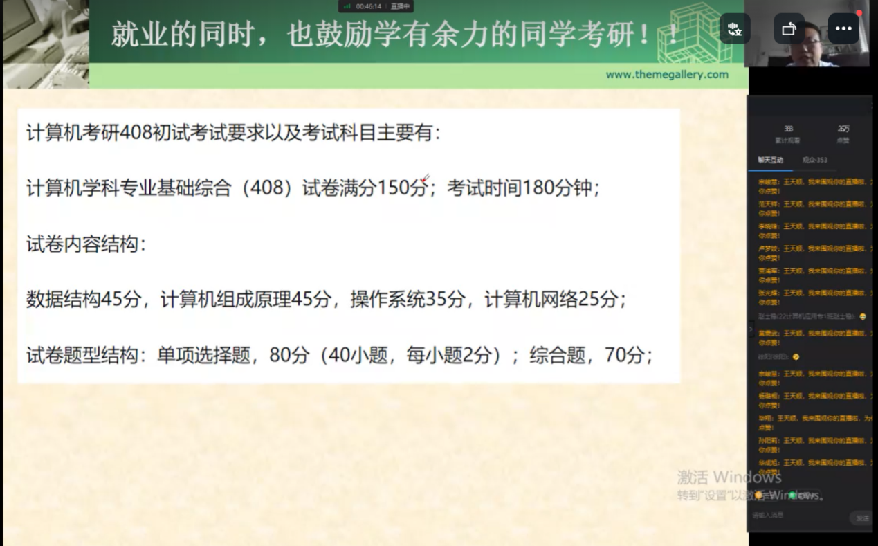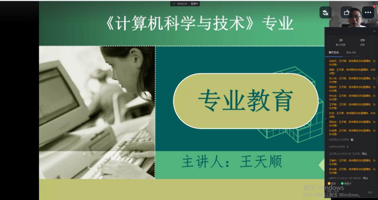 为帮助计算机专业本专科新生更快适应老员工活、帮助同学们更好地了解本专业基本情况,树立正确的学习目标,迈向精彩的人生,计算机科学与技术教研室主任王天顺老师于9月21日下午通过钉钉直播的方式对2022级本科、专科新生进行了新生专业教育,全体2022级新生参与。