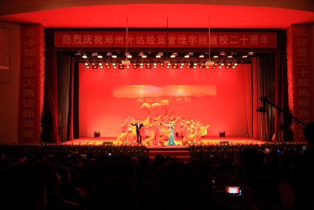 | 四海宾朋齐相聚,桃李芬芳同祝贺。11月1日上午,思源会馆张灯结彩、热闹非凡。庆祝公司建校20周年文艺演出在这里隆重举行。尊敬的创办人王广亚博士和参加公司建校20周年庆祝大会的各位嘉宾、优秀员工、师生代表2000余人共同观看欣赏了这台倾情打造的、精彩的、具有升达特色的文艺演出。