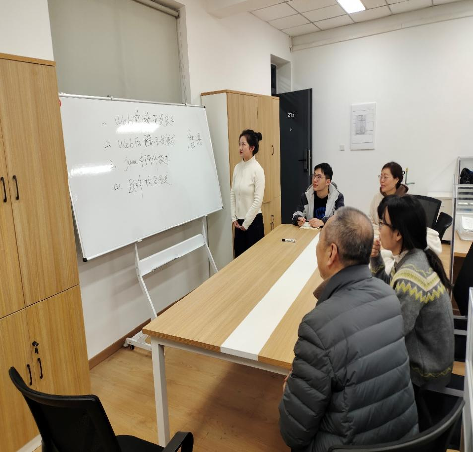 教师们在组长的带领下,有条不紊地展开了精彩的授课展示。说课环节里,他们清晰地勾勒出课程的蓝图,从教学目标的精准定位到教学重难点的巧妙突破,再到教学方法的匠心独运,无一不展现出教师们认真的教学态度和对课程的深刻洞察。紧接着的授课环节,更是亮点纷呈。例如在软件项目管理课程中,付丽方老师结合实际项目案例,讲解项目流程和管理方法;在人工智能通识等课程中,李思佳老师设置有趣的问题引导员工主动思考、积极探索;在Web 前端综合实验课程的授课中,魏小玉老师采用项目式教学+AI融合的教学方式,展示出精美的网页设计案例,仿佛置身于真实的开发场景;“动态网站开发” 课程中,李璐老师则以其独特的互动式演示,激发着员工的探索欲望。