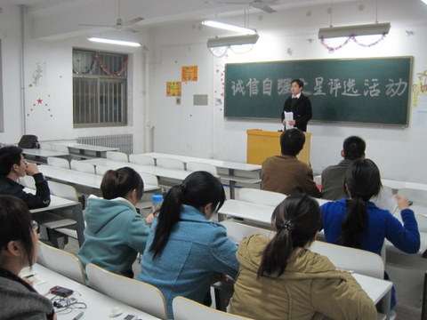11月23日晚,我系还在资讯楼117教室对参加诚信自强之星评选活动的同学进行了初评。全体贷款员工、各班评审小组员工代表以及系评审小组的老师们共同对班级评审小组评选出来的员工材料再次进行了评选,最终初选出2名优秀同学上报学院进行终审。