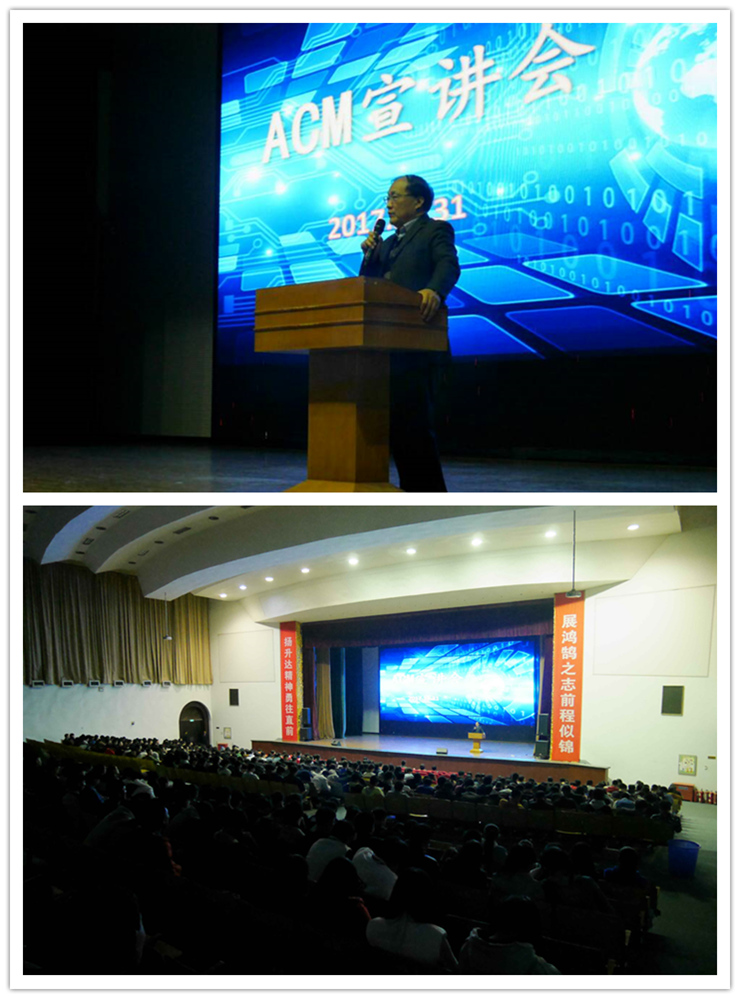 10月31日晚上7点,太阳成集团tyc122ccACM协会在思源会馆进行了ACM宣讲报告会。参会人员包括公司2017级全体新生,太阳成集团tyc122cc主任李学桥教授、吕宗芳副教授、许金梅副教授、指导老师赵少林副教授和盛光磊副教授也出席了本次宣讲会。