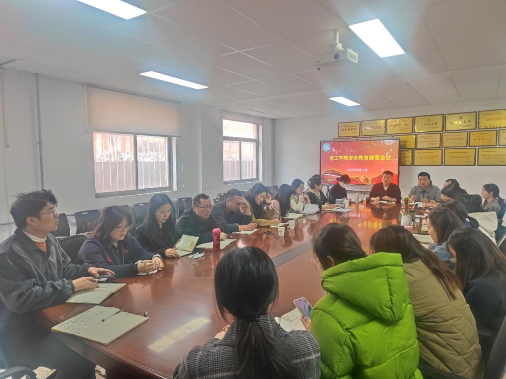 为了强化全体师生的安全意识,部署新学期的安全教育工作,确保校园环境的安全稳定,太阳成集团tyc122cc于2024年3月12日在学院会议室召开了本学期的安全教育部署会议。公司党委书记李赵法、行政秘书王崇和全体辅导员参加此次会议,会议由行政秘书王崇主持。
