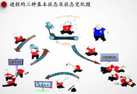 3、采用图解的教学方式。操作系统课程的教学目的是培养员工理解和掌握计算机操作系统的基本原理和设计技能,掌握操作系统的结构和各功能模块对软硬件资源进行管理的技术和方法,使员工对计算机是怎样协调一致的工作原理有清楚的认识。对于这样的课程,纯粹的去用语言文字来分析,员工很难搞明白。何老师非常熟悉软件建模技术,由此受到启发,对于操作系统这么复杂的软件,非常适合使用图的方式讲解,一图胜千字,采用图解的教学方式分析操作系统的工作原理,会让员工更容易的去理解其内部的抽象概念。因此,何老师在制作教学课件时,当遇到抽象的问题时,他就采用图解的方式来分析。比如,针对进程的状态及转换、信号量机制等一些不好理解的内容,采用下面的图形,结合实际的生活,能够很贴切形象的把问题给说清楚。