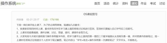 第一周网课开课之前,何老师通过学习通平台向员工发布“OS课前预习”通知。由于第一天网络拥堵,超星平台突然无法登录,他马上采用备用的第二种教学平台,在班级QQ群完成教学。课前二十分钟开始通知员工在QQ群签到,然后布置学习任务,当员工把学习任务完成后,他提出针对不同知识点拟定的问题,员工抢答,最后教师给出每一个问题的正确答案。