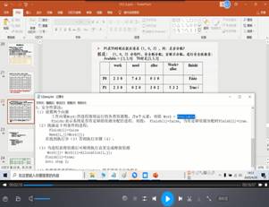 在直播过程中,课件上面的静态的图片有时仍不足以把问题说清楚,何老师就把幻灯片上面的图片做成动画,或者使用计算机中的画图程序作为讲课的黑板,边讲解、边绘制、边分析,下面是何老师讲授处理机三级调度和最高响应比优先调度算法时的录屏截图。