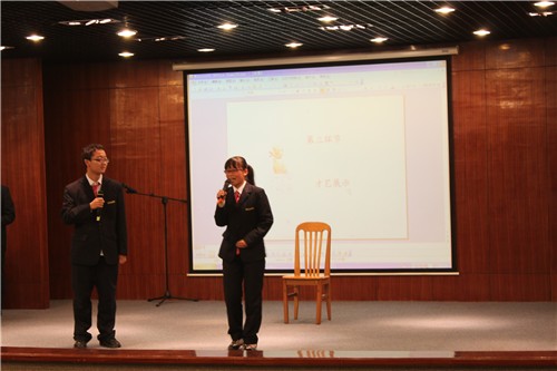为进一步推进校园文化建设,加强老员工素质教育,促进老员工全面发展,11月17日晚,由资讯系和文法系联合举办的主持人大赛决赛在外语楼一楼多功能报告厅隆重举行。出席比赛的嘉宾有资讯系行政秘书兼团委书记陈刚老师,文法系行政秘书兼团委书记郑玲玲老师,文法系2011级年级团总支书记、辅导员刘玉梅老师,资讯系2011级年级团总支书记、辅导员袁保华老师以及院员工会主席许春亚、院学艺部长李真、院学艺部副部长相海霖、外语系团委副书记张泽宇、营销系员工会主席张鎏奇、国贸系学艺部部长刘文杰、营销系学艺部部长张鑫等,两系2011级的员工也到场观看了本次比赛。