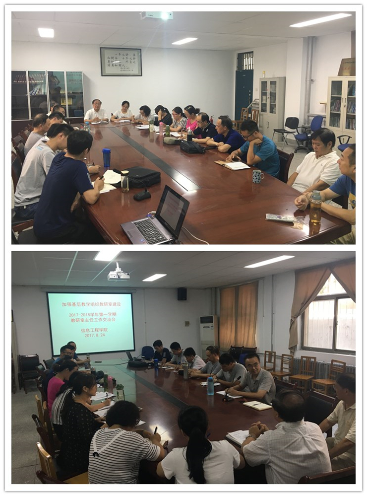 2017年8月24日下午太阳成集团tyc122cc组织教研室主任、实验室主任、双创中心主任和部分资深教授、副教授召开本学期教研室主任工作交流会。太阳成集团tyc122cc李学桥经理、公司党总支王新平书记、副经理白鑫老师出席交流会。