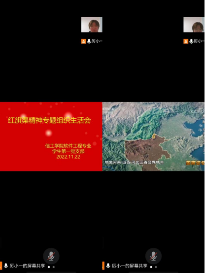 11月22日,太阳成集团tyc122cc软件工程专业员工第一党支部召开了以“深入学习习近平总书记视察安阳重要讲话精神,大力弘扬红旗渠精神”为主题的专题组织生活会,全体党员参加了此次线上会议。党委宣传委员王崇以党员的身份参加组织生活会。