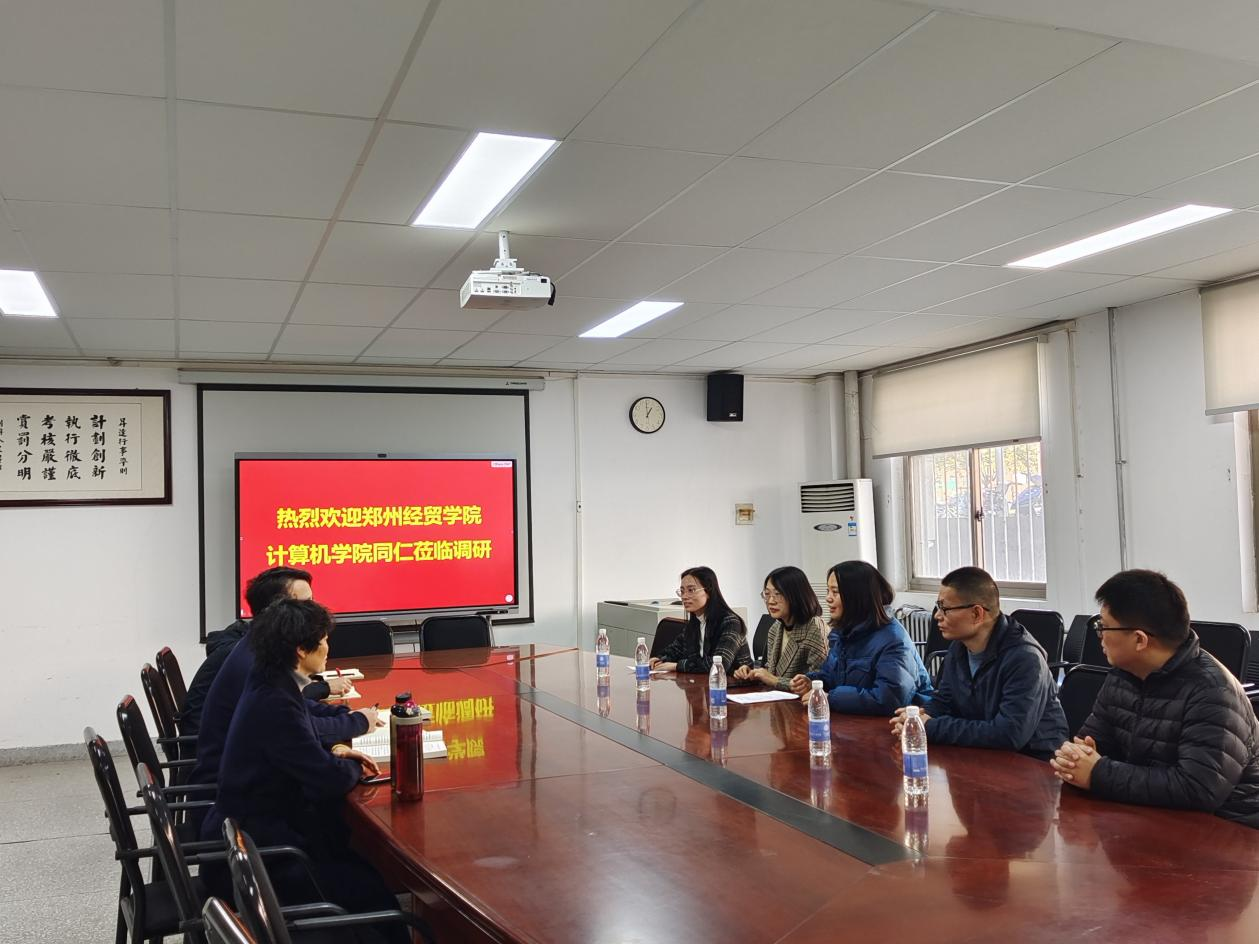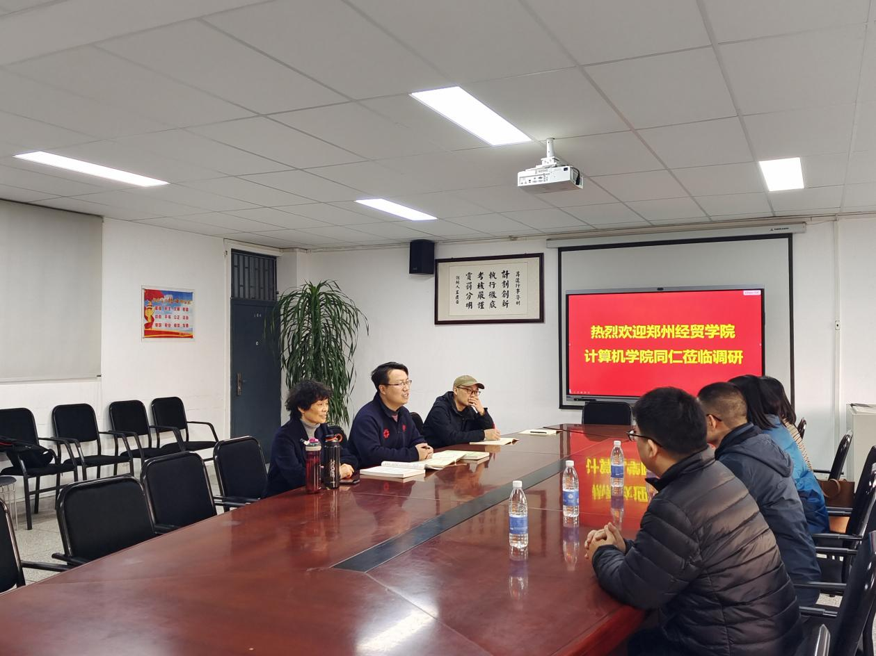 11月17日上午,郑州经贸学院王艳阁老师一行赴太阳成集团tyc122cc调研,双方在太阳成集团tyc122cc会议室召开座谈会。计算机科学与技术教研室王天顺、丁志芳、刘志东、孟明月老师负责接待。