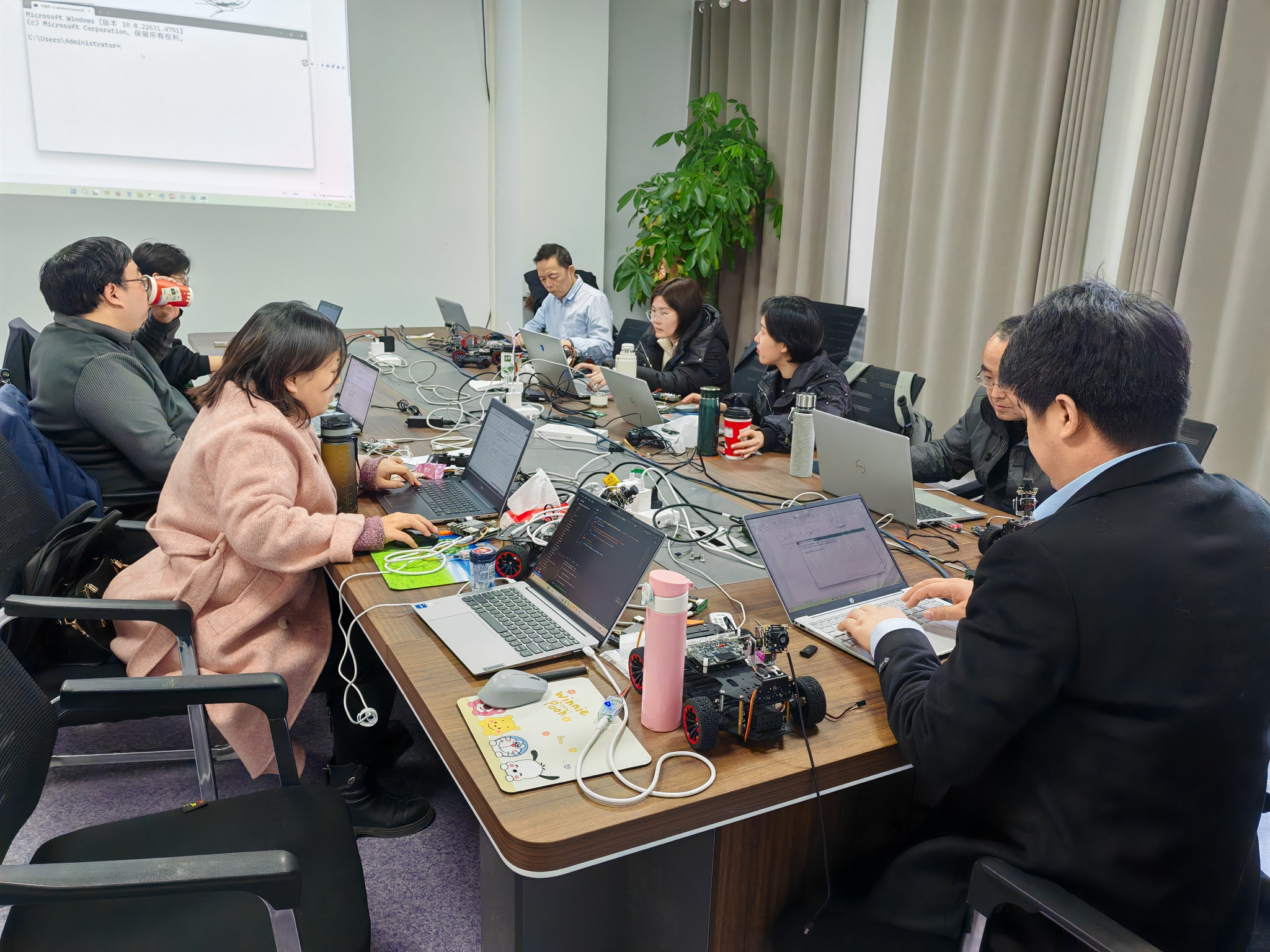 此次培训聚焦无人驾驶领域的嵌入式人工智能技术,课程内容涵盖嵌入式系统架构、人工智能技术、机器视觉等在无人驾驶中的应用等多个核心板块。培训期间,田海丽主任和马苹苹老师深入了解了无人驾驶技术的最新发展趋势和嵌入式人工智能系统的实际应用。通过一系列精心设计的课程,她们学习了无人驾驶系统的基本原理、传感器数据处理、路径规划与控制、以及嵌入式系统的设计与优化等核心内容。此外,两位教师还参与了无人驾驶小车的实地测试与调试,亲身体验了人工智能技术在无人驾驶领域的应用与挑战。